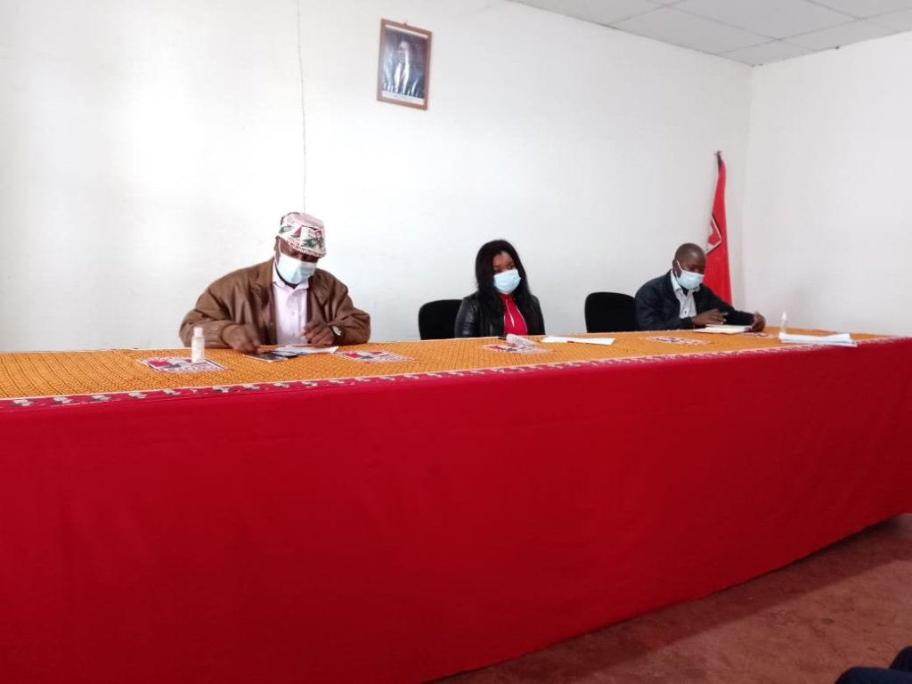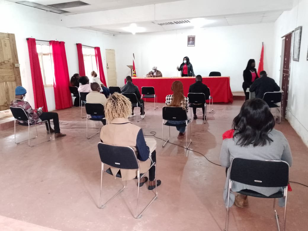 A Camarada Leonor Joaquim Nhangala, Secretária Distrital da OJM para a Área de Administração e Finanças, reuniu no dia 10 de Agosto de 2021, na Sede Distrital do Partido FRELIMO, com os Secretários das Finanças dos Comités dos Círculos da OJM, com o objectivo de falar do mecanismo de pagamento de quotas a nível da OJM.